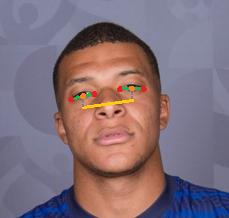 Pour pouvoir aligner un visage, il faut avoir des points de références, pour savoir si le visage est incliné. Le principe de l'algorithme est de reprendre les points des deux yeux. Pour chaque oeil, on reprend le centre entre ces deux points. Il y aura donc deux centres pour chaque oeil, pour un visage. Dernière étape, tracer une ligne entre ces deux points centrales. La ligne qui apparaîtra aura un angle par rapport à une ligne complètement horizontale. Le but ensuite est de redresser l'image pour que la barre soit horizontale.